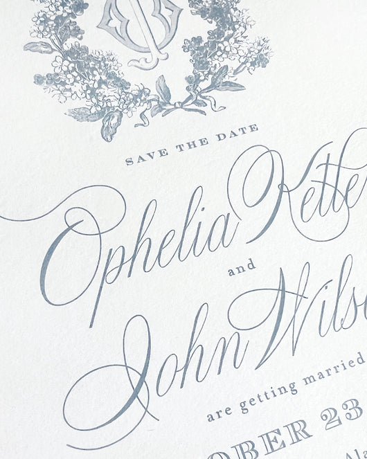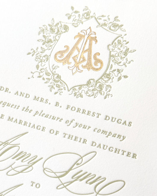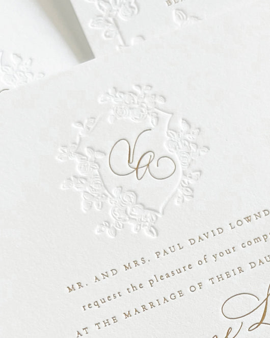 blind pressPerfect for design elements such as crests, wreaths, borders and monograms! A plate is made of the specific detail you would like to have pressed, and it is pressed into the paper without ink, leaving an impression that is subtle but gorgeous. May be combined with any print method.