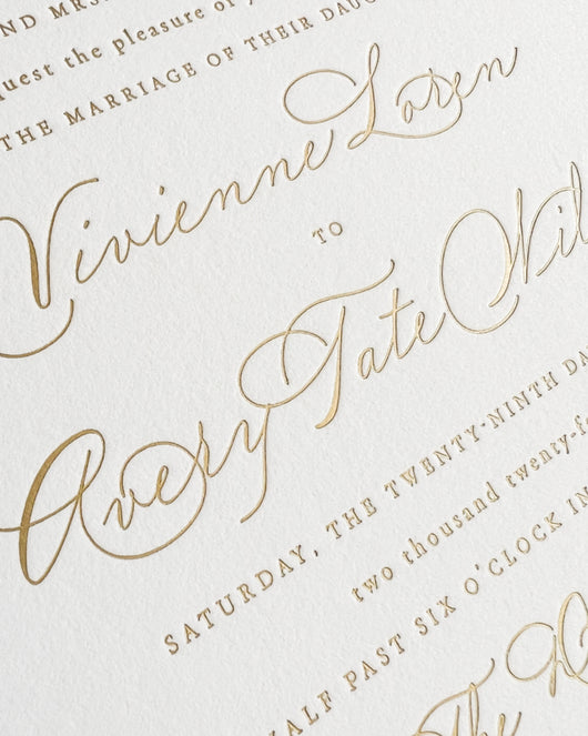 foil printingA plate of your design is hand-pressed with metallic foil into paper, leaving a shiny, touchable impression in pillowy soft cotton paper. If you run your fingers over it, you can feel the indentation.