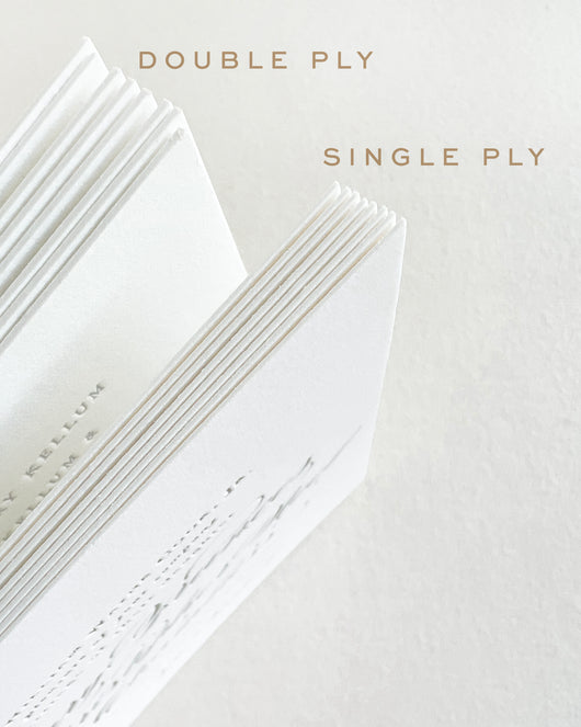 Single or Double PlySingle ply is a substantial, 120 pound paper. Double ply is 240 pound, twice the thickness of single ply. When choosing the paper weight, it is truly a personal preference.