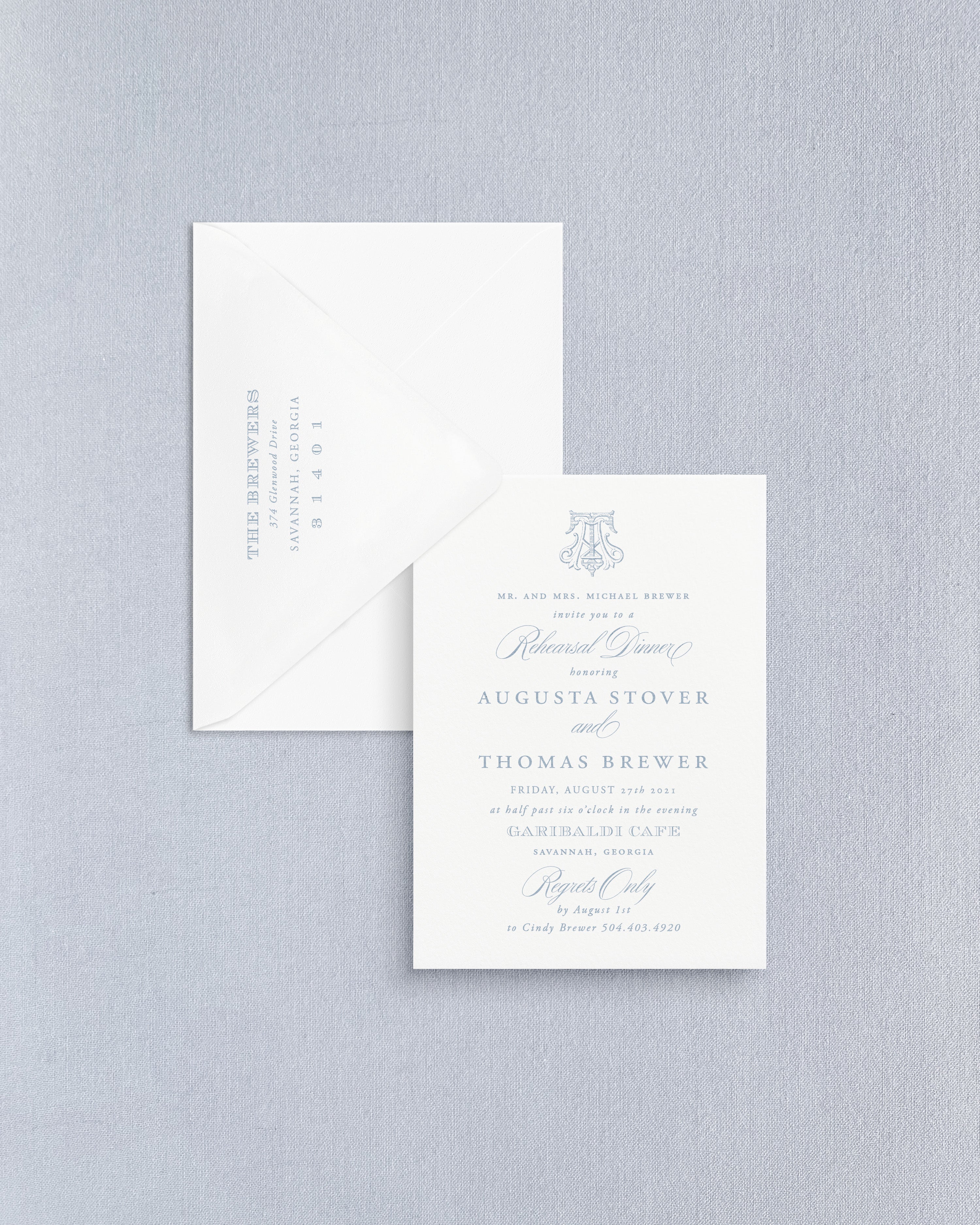 Artistic watercolor meets traditional wedding paper with our Augusta Suite. Pairing classic script letter styling with an optional selection of monogram styles and watercolor floral crests, this suite gives all the versatility while keeping a formal undertone. Augusta is sure to leave a memorable impression for any wedding aesthetic, from afternoon to black-tie.