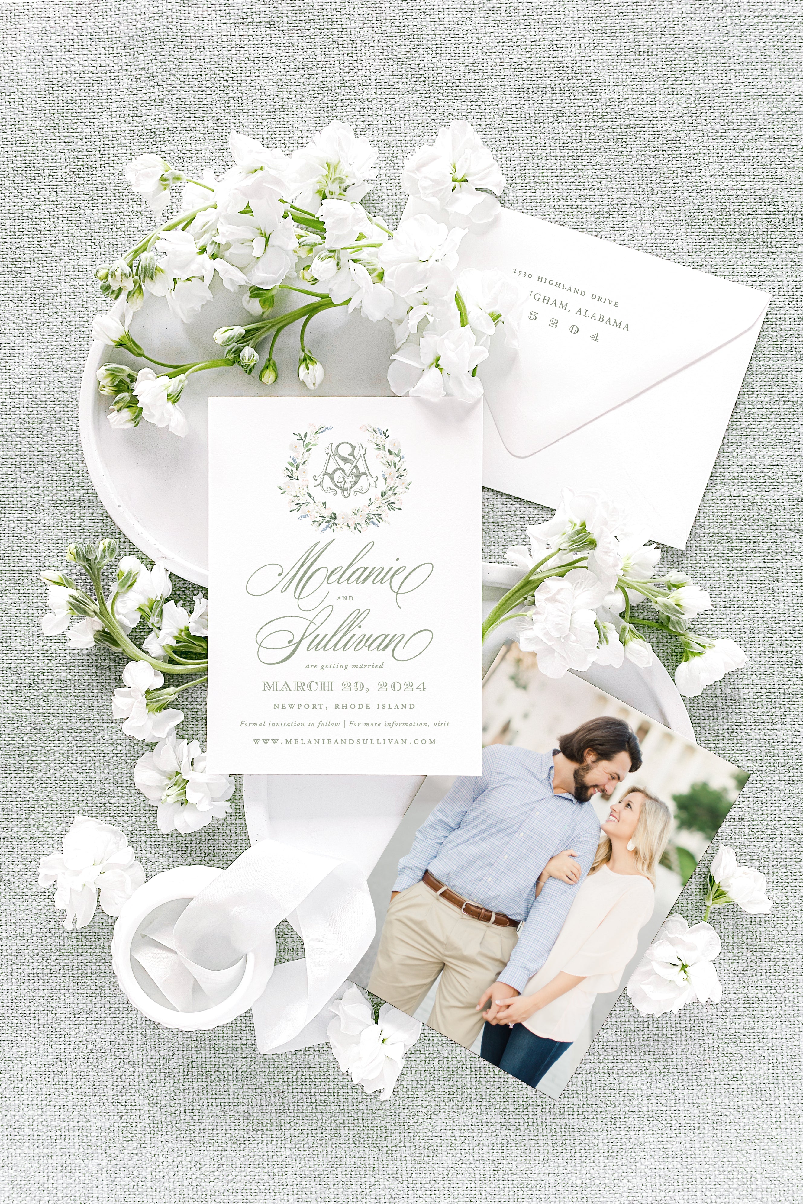 Your suite or save the date includes the use of any of our crests at no additional cost. Or, you may choose no crest for a cleaner, simpler layout. Crests are used with your monogram selection, and can be placed on any piece within your suite. You will make your selection on the order form that appears when you click 'Personalize' above.
