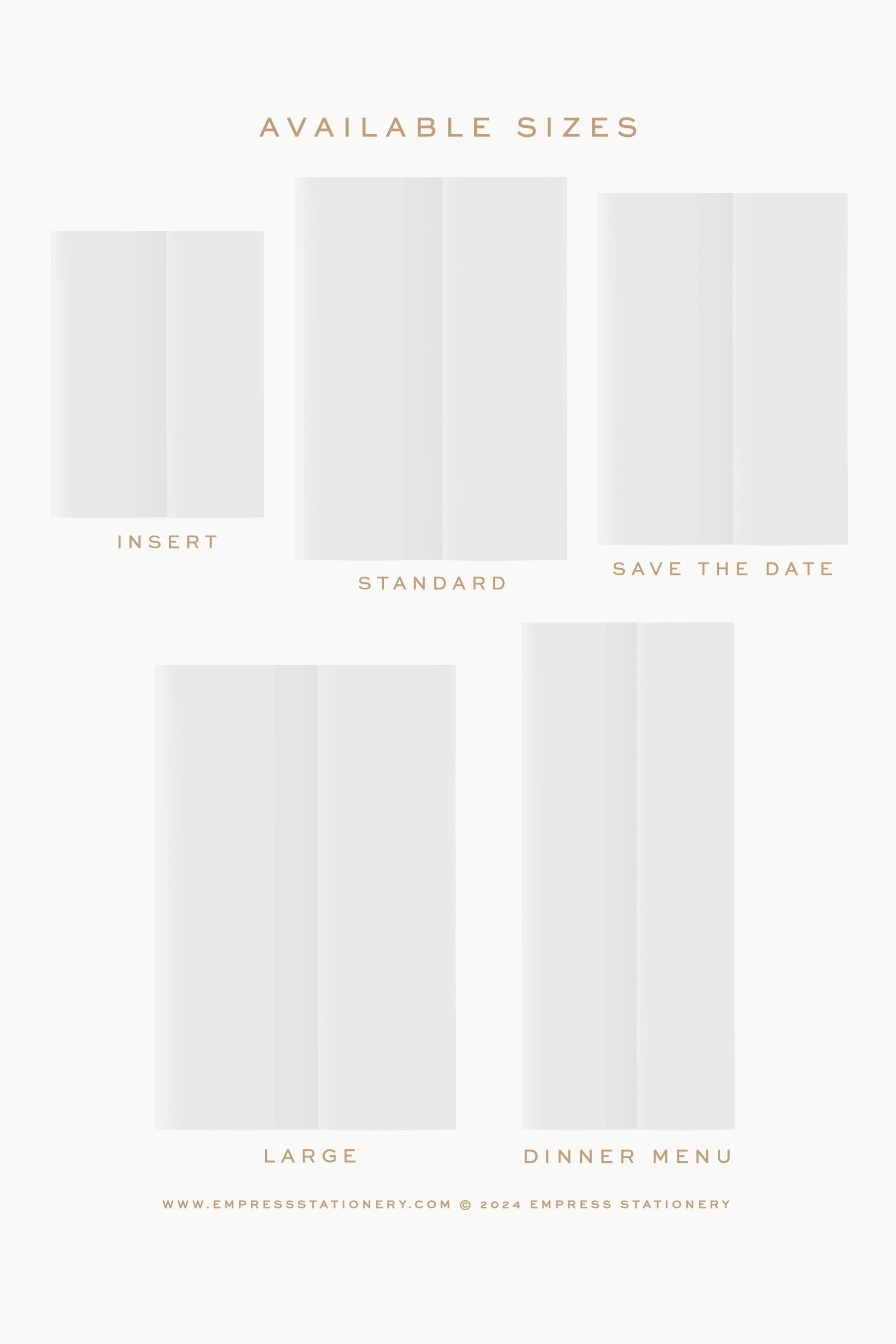 Large (fits our upgraded larger 5.5 x 8.5 invitation): 8.5 x 12