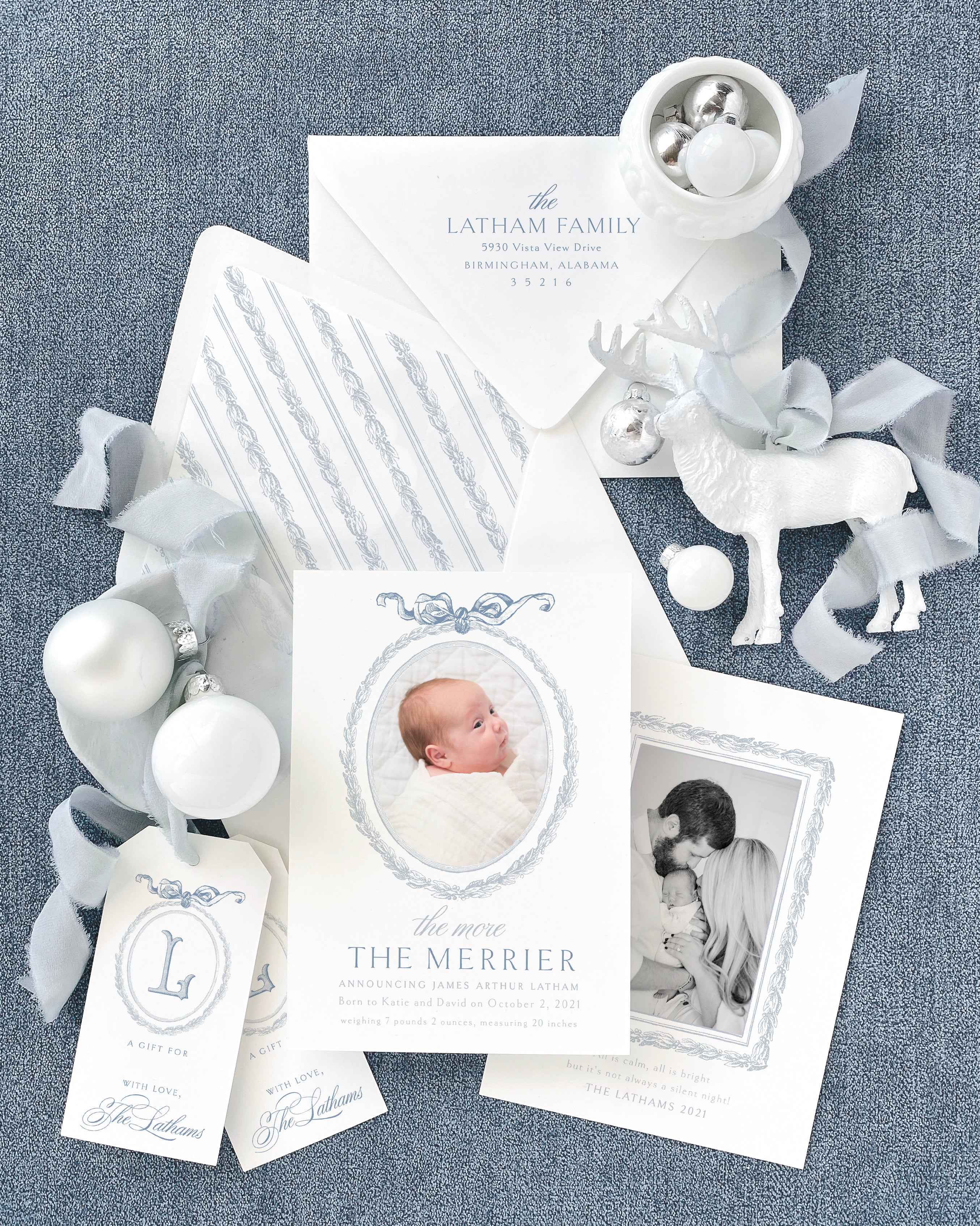 This joyous card welcomes the newest addition to your life with an announcement to your friends and family.
