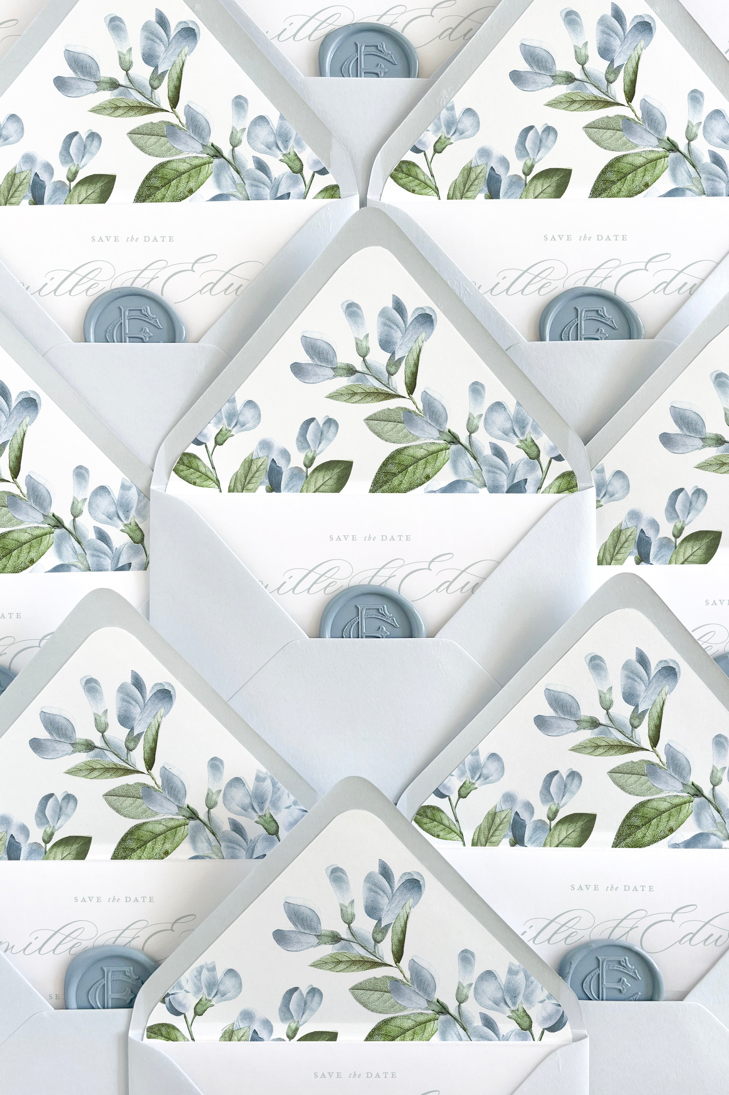 Elevate your envelope with our Botanical Liners. Each selection features exclusively designed floral illustrations that add to your color story and wedding day aesthetic. Available for any size envelope, from response to thank you notes, save the dates to invitations.