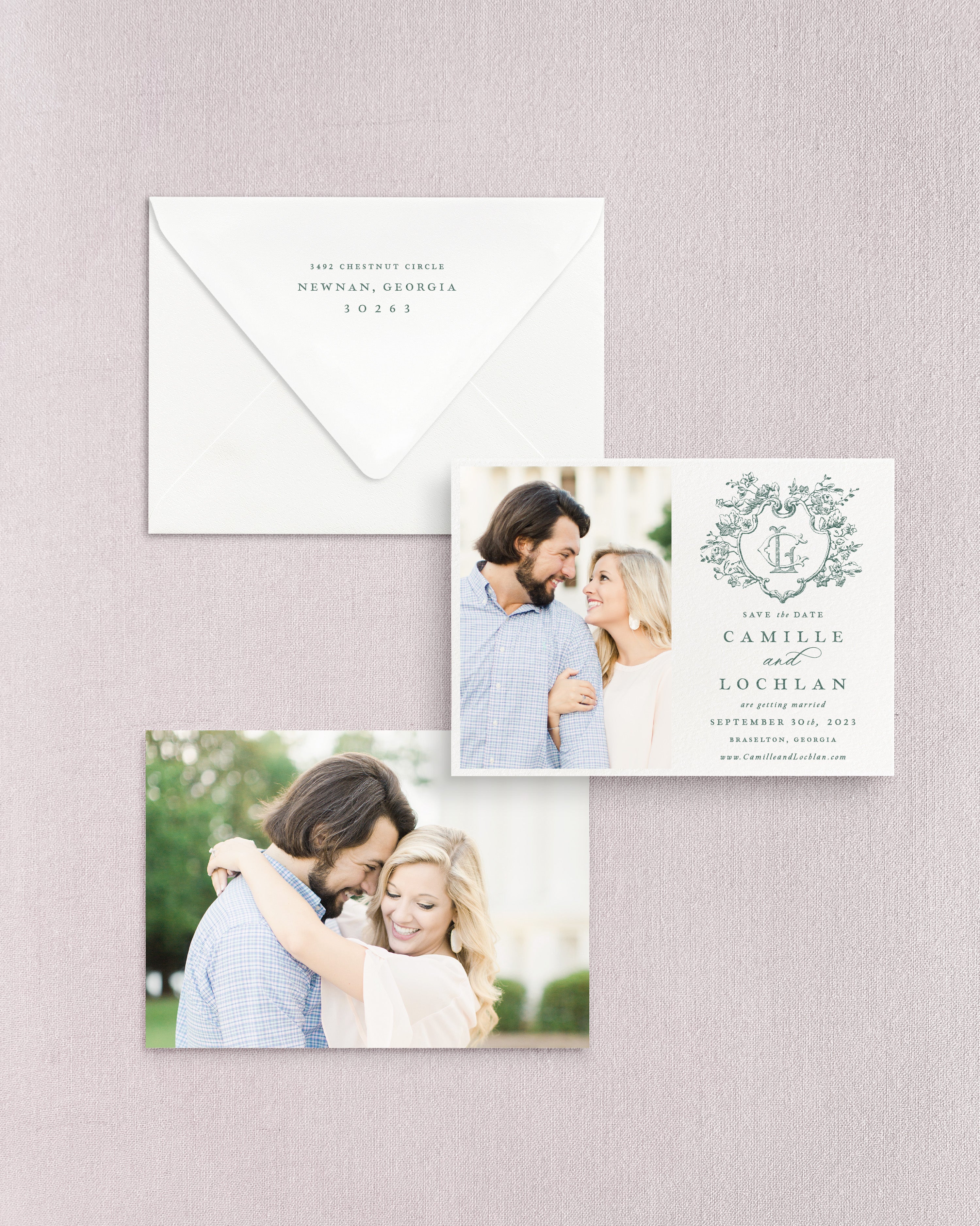Your suite or save the date includes the use of any of our crests at no additional cost. Or, you may choose no crest for a cleaner, simpler layout. Crests are used with your monogram selection, and can be placed on any piece within your suite. You will make your selection on the order form that appears when you click 'Personalize' above.
