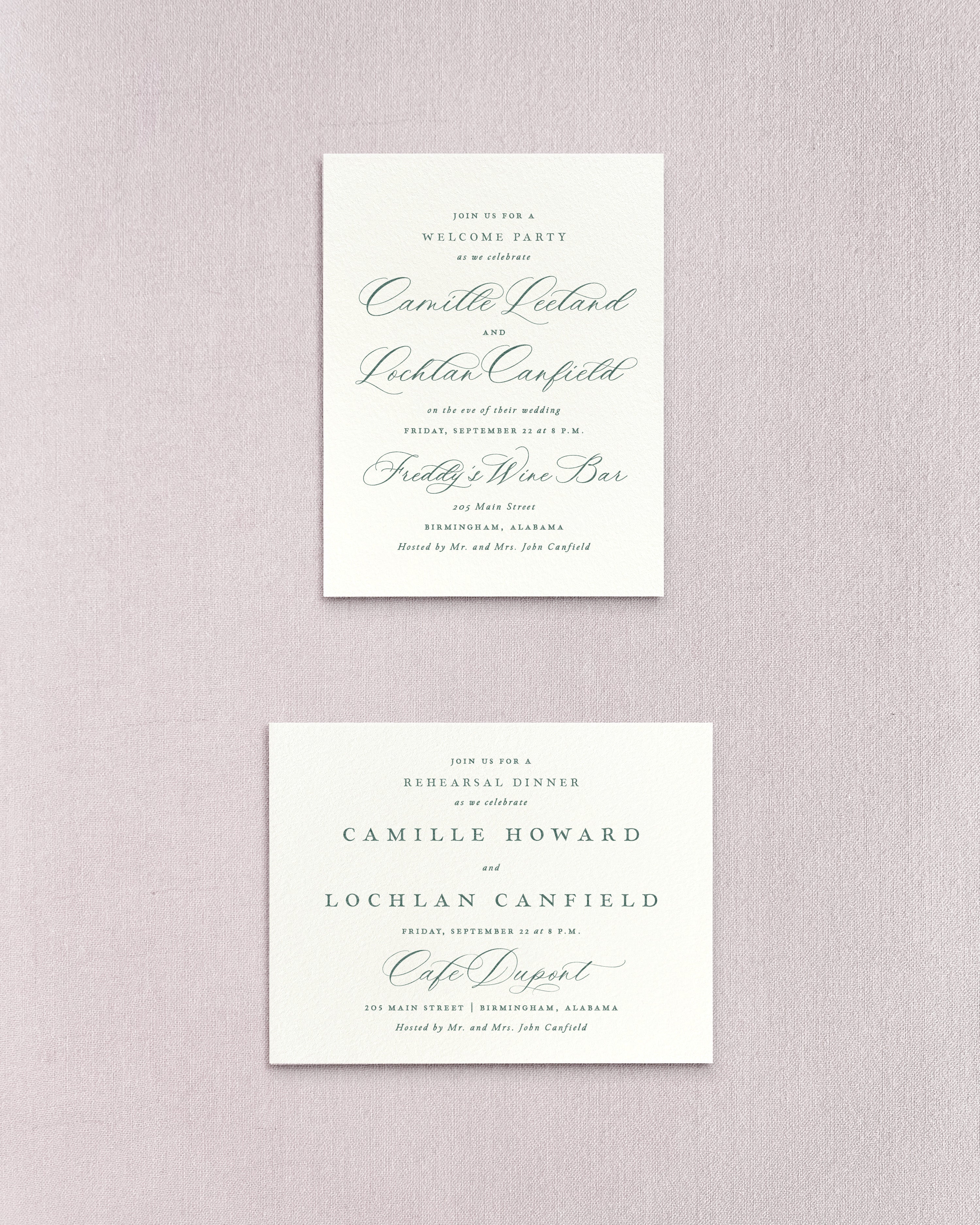 Classic composition meets an easy flowing script with our Camille Suite, giving a fresh approach to the traditional invitation design. We love this suite with a custom painting or drawing, but it pairs exquisitely with a monogrammed wreath or crest. Intentionally created with the Empress bride in mind, The Camille Suite is one you'll love for years to come.