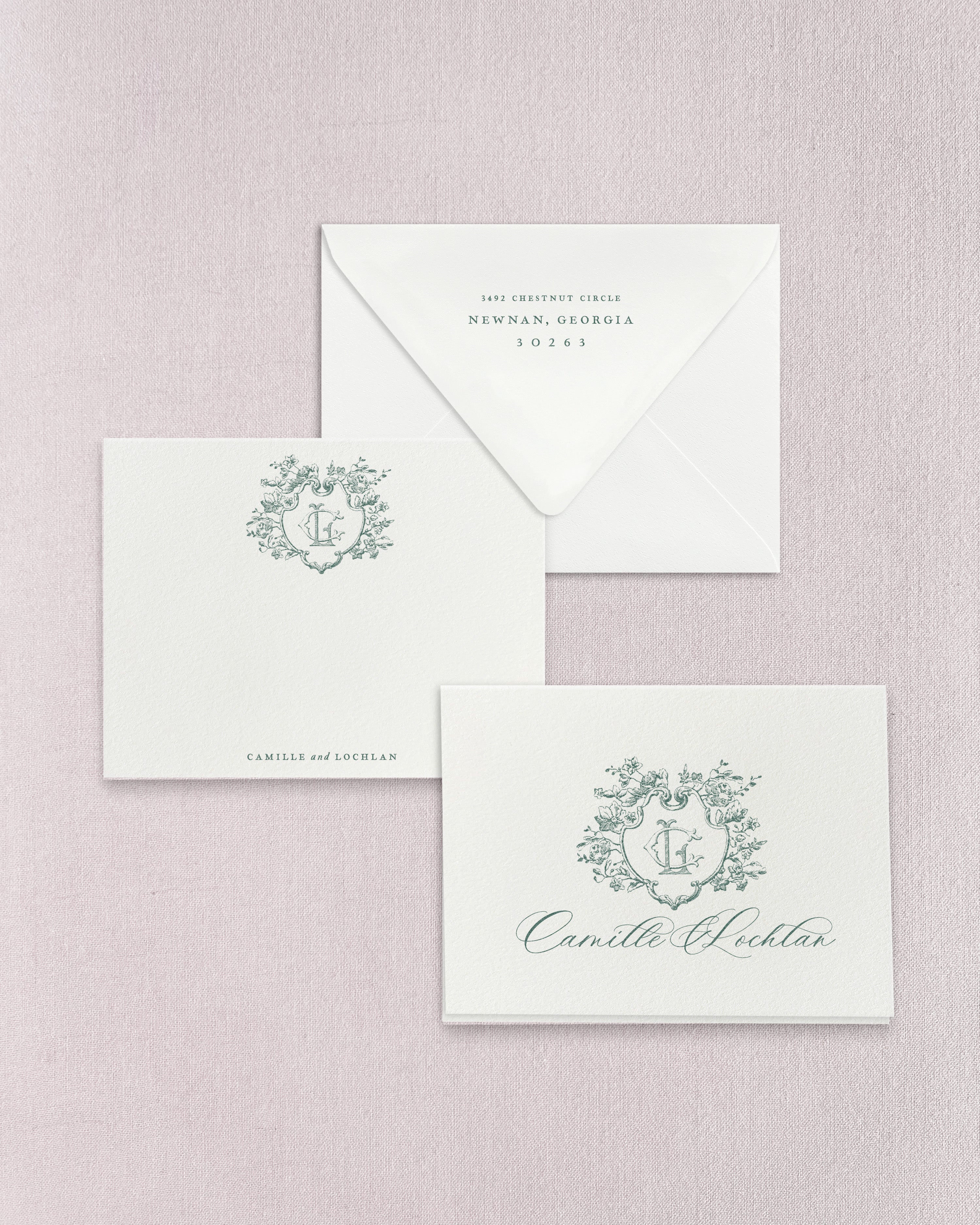 Begin post-wedding life right with beautiful notes from the Newlyweds. The Camille Thank You Cards are even perfect before the wedding, as well as any special occasion. These elegant notes are customized with your selection of ink and paper color, printing method, and design details for an elevated touch of sophistication in your correspondence. Say thank you in style in just a few quick steps!