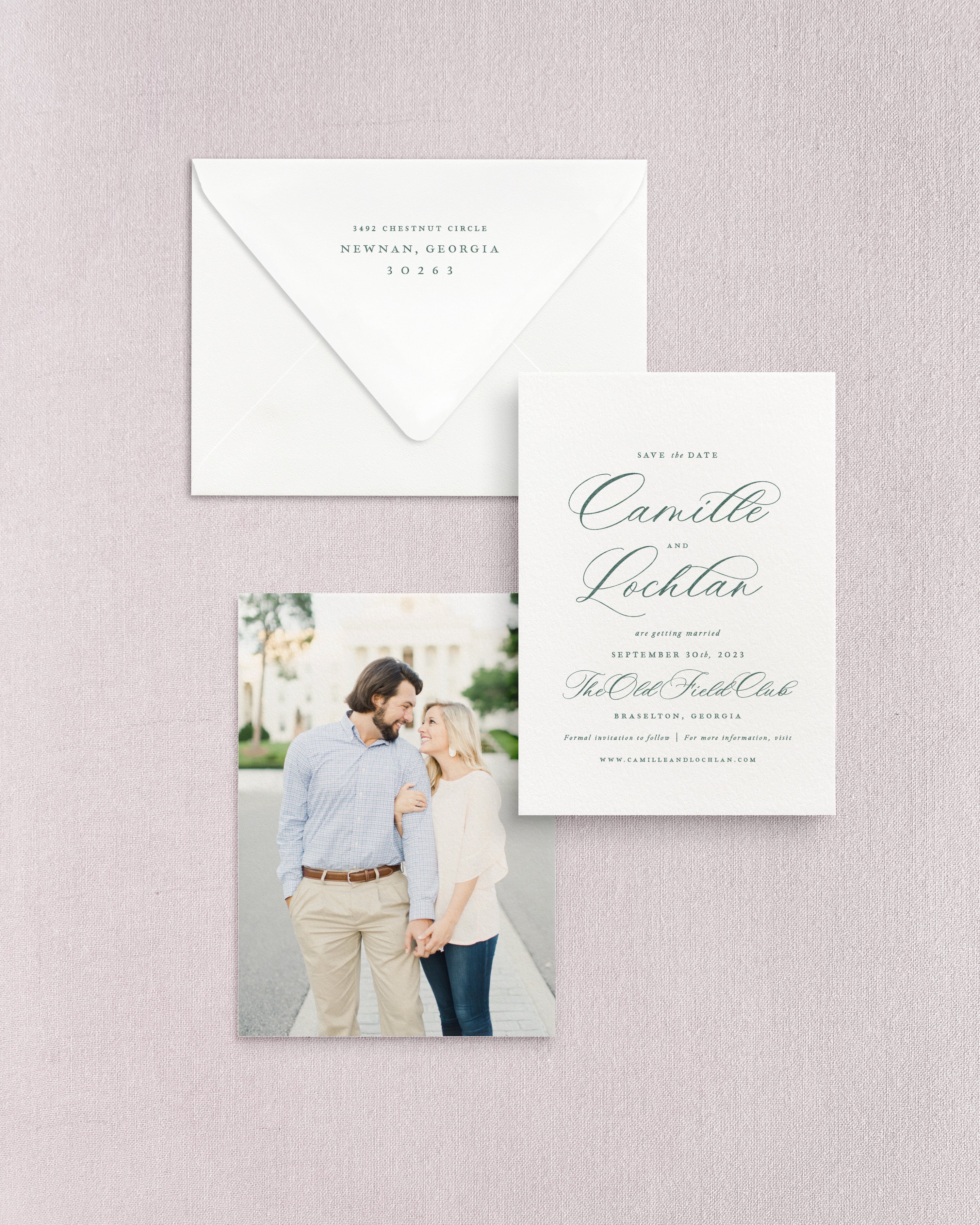 Classic composition meets an easy flowing script with our Camille Suite, giving a fresh approach to the traditional invitation design. We love this suite with a custom painting or drawing, but it pairs exquisitely with a monogrammed wreath or crest. Intentionally created with the Empress bride in mind, The Camille Suite is one you'll love for years to come.