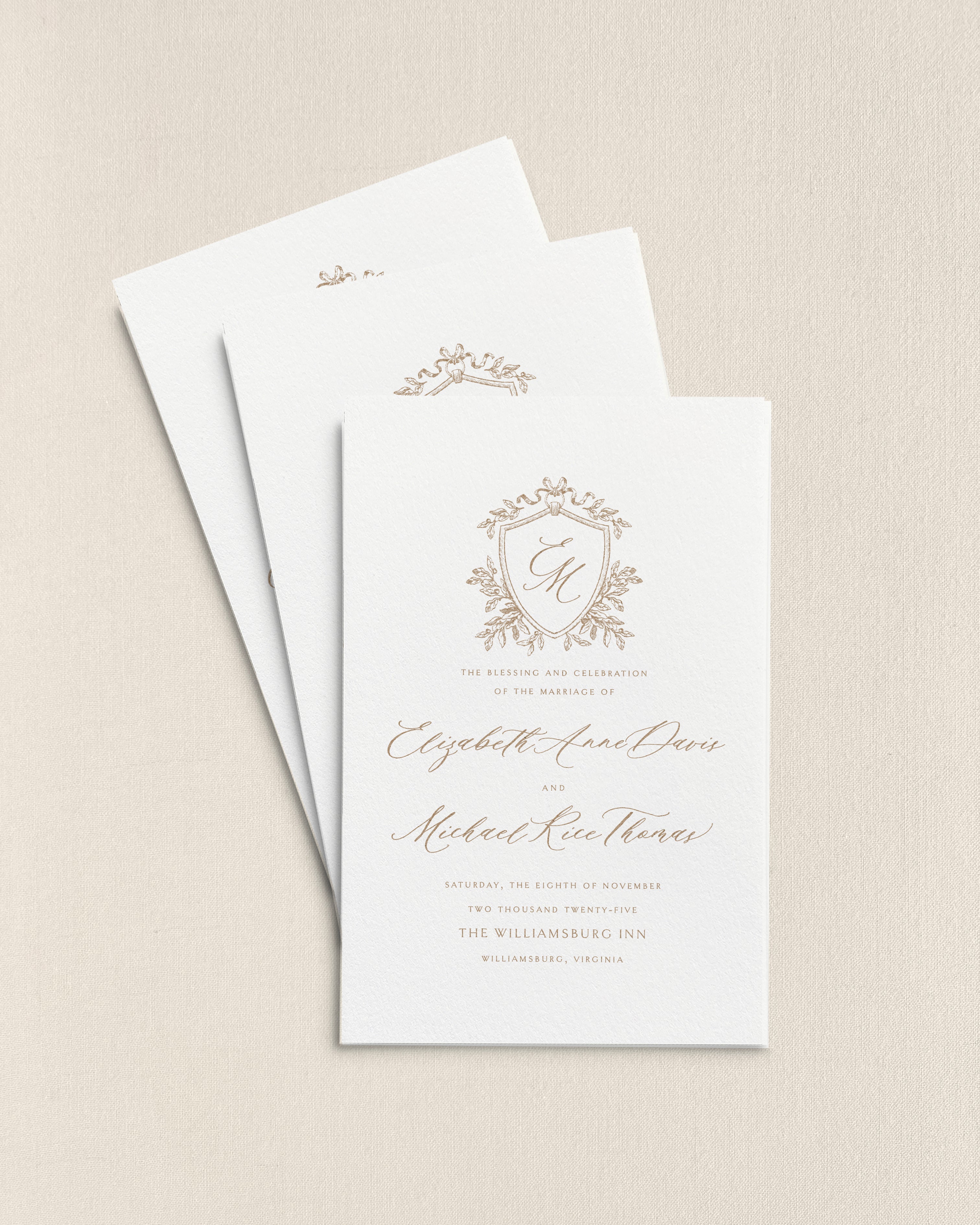 Your day of paper can include a crest or wreath of your choice, as well as a monogram or initials that you will select on the order form.