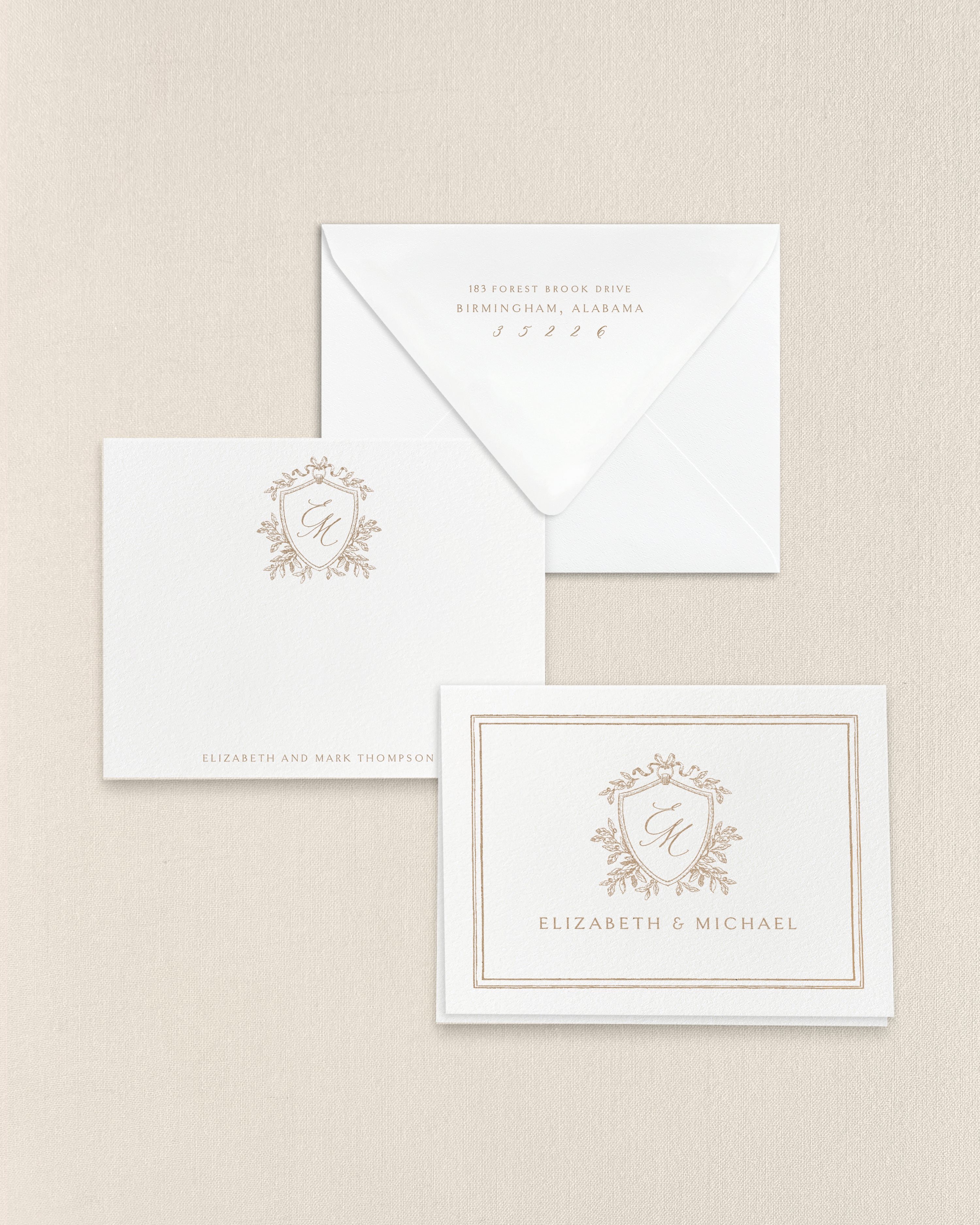 Adored for its unique composition and modern border design, the Elizabeth Suite is the perfect way to set the tone for your wedding day. With a selection of crests and monograms, as well as an expertly paired script and serif typesetting, Elizabeth showcases a timeless appeal and captivates with a hint of modern flair.