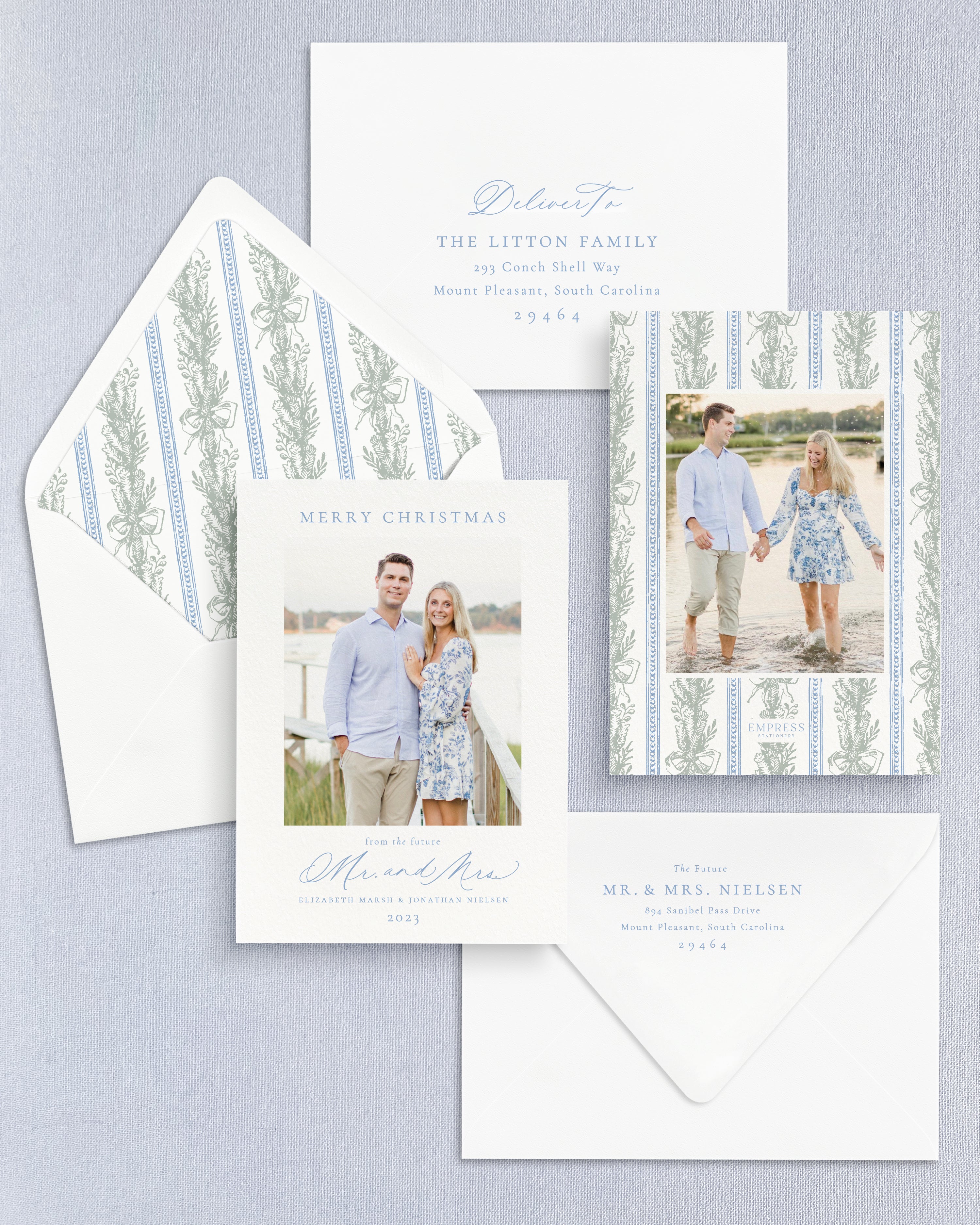 Can I change ink, paper or envelope color? Color customization is not available with our Christmas Collection. Inquire for Custom Christmas card availability by emailing clientcare@empressstationery.com