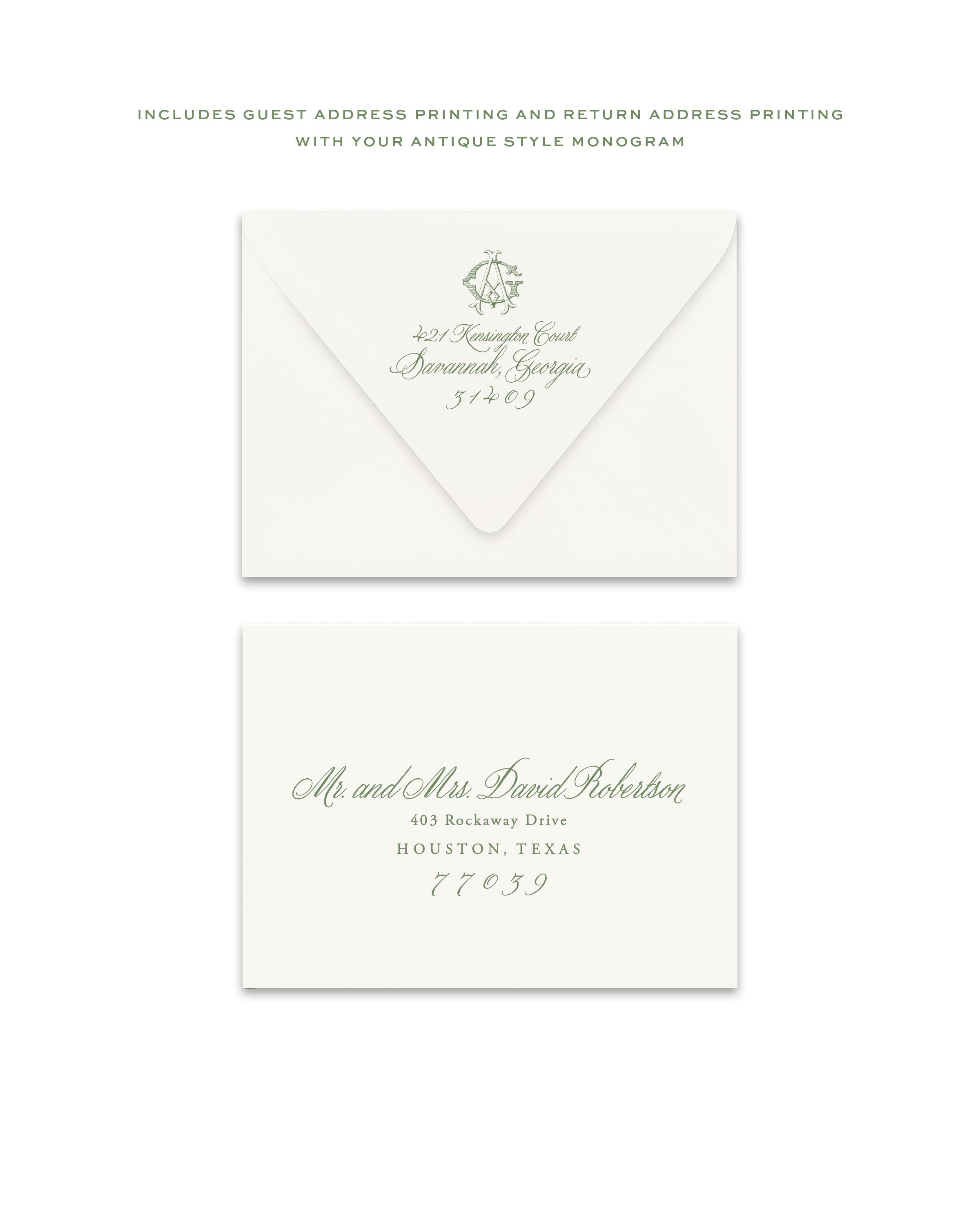 3. Your suite will require up to 3 weeks in production, and will ship to you via ground delivery upon completion. Production cannot be rushed at this time. If you have any concerns about the timeline of your order, email us at clientcare@empressstationery.com prior to ordering.