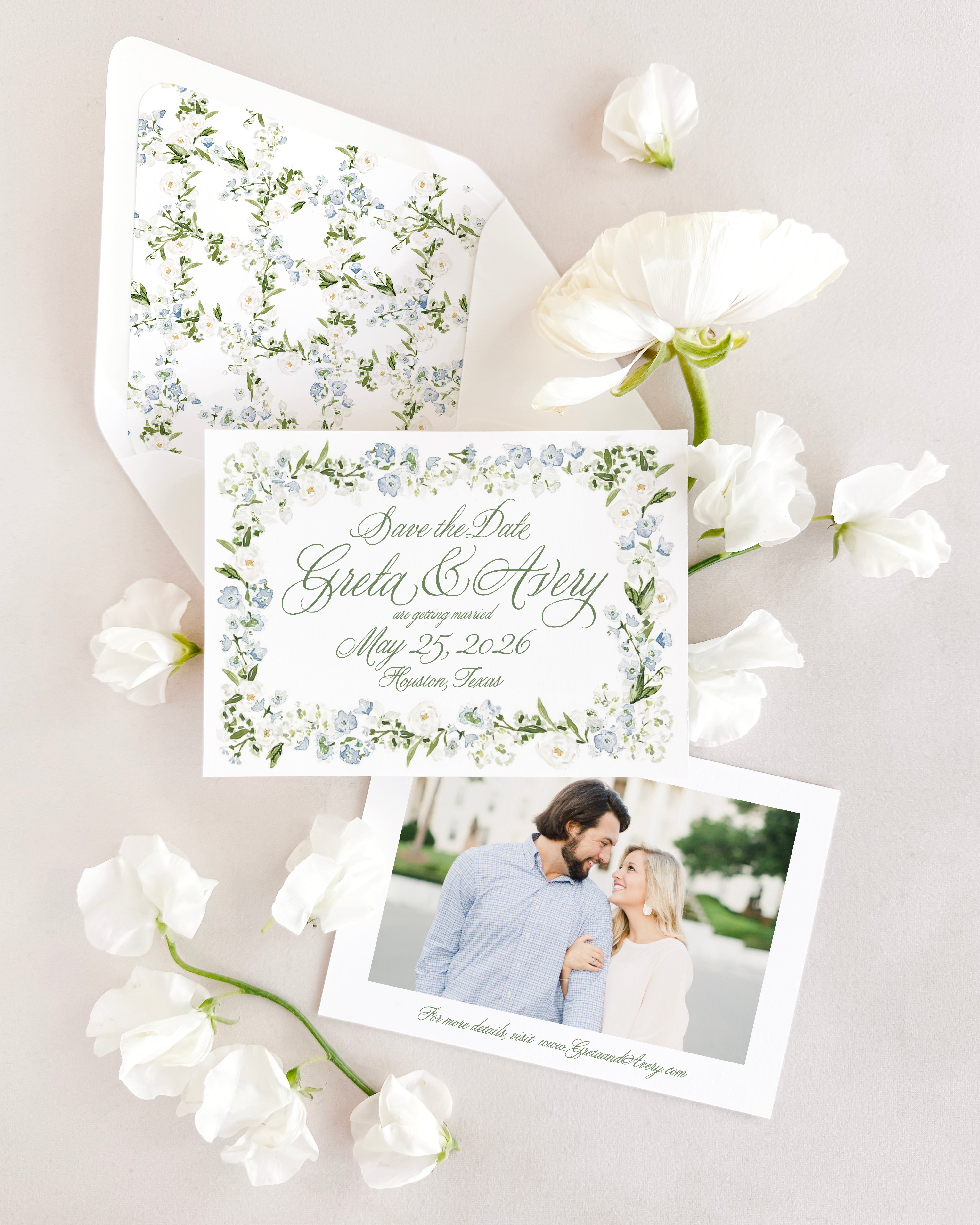 Our curated save the dates are intentionally styled with the most elevated pairings from our semi-custom collection. Every detail is refined, cohesive, and ready to impress—giving you a designer-level suite without the endless decisions.