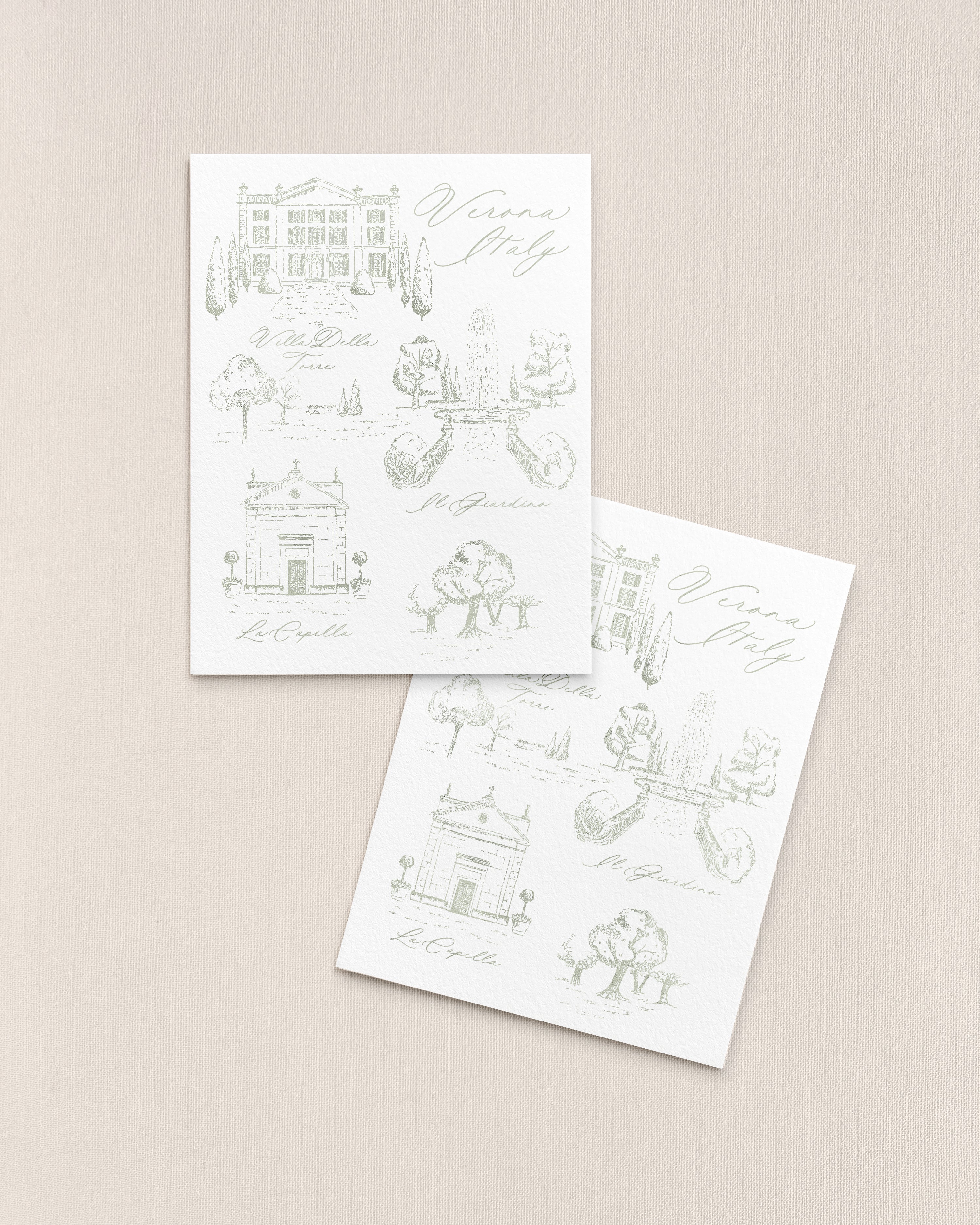 Once your order is placed, we will review your order form and reach out if we have any questions at all. Our in-house artist will begin painting or drawing your artwork, and your points of interest card will be included in your proof within the layout of your entire suite. It is important that this artwork is viewed in context, as part of the layout of the card and the suite as a whole.