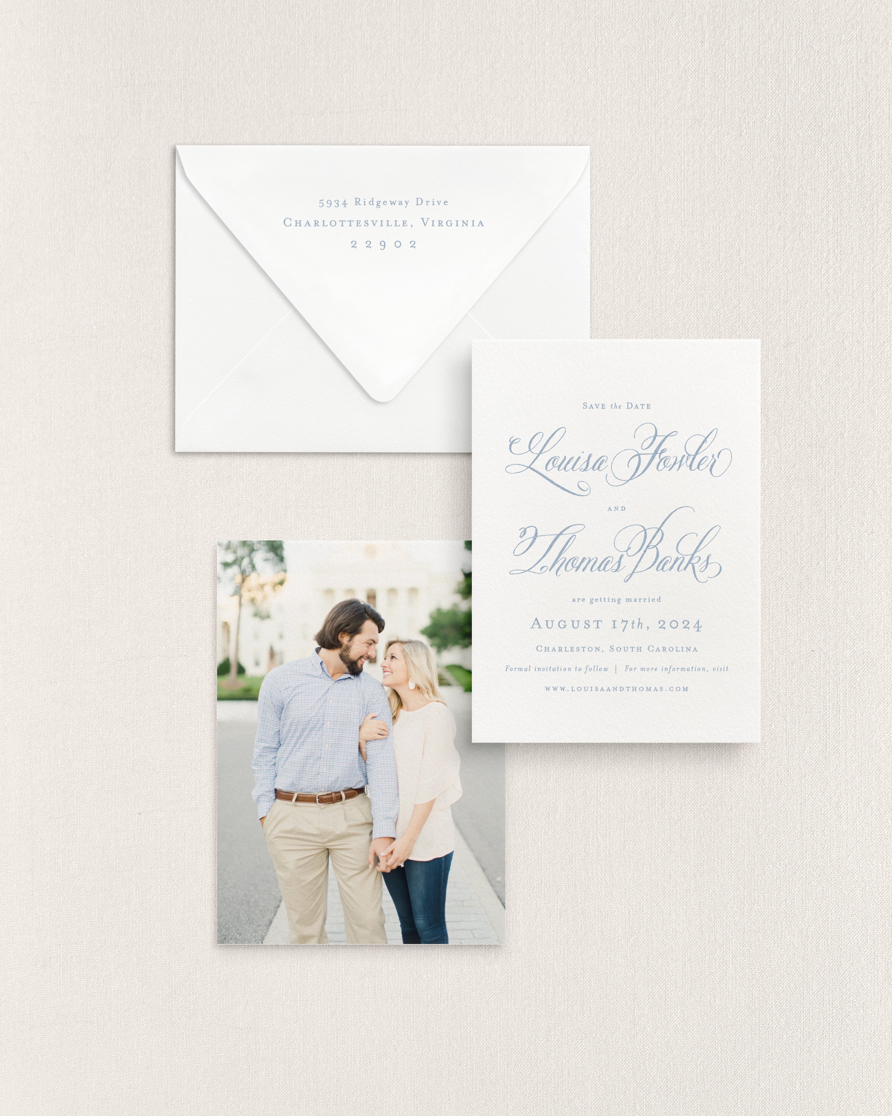 The Louisa Suite is the perfect combination of romantic Southern charm and whimsy with its selection of expertly painted watercolor florals and calligraphy styled script. This suite instantly sets the tone for an afternoon ceremony in the garden, or an elegant evening dancing beneath the stars. With multiple monogram style and floral detailed offerings, Louisa is a true client favorite.