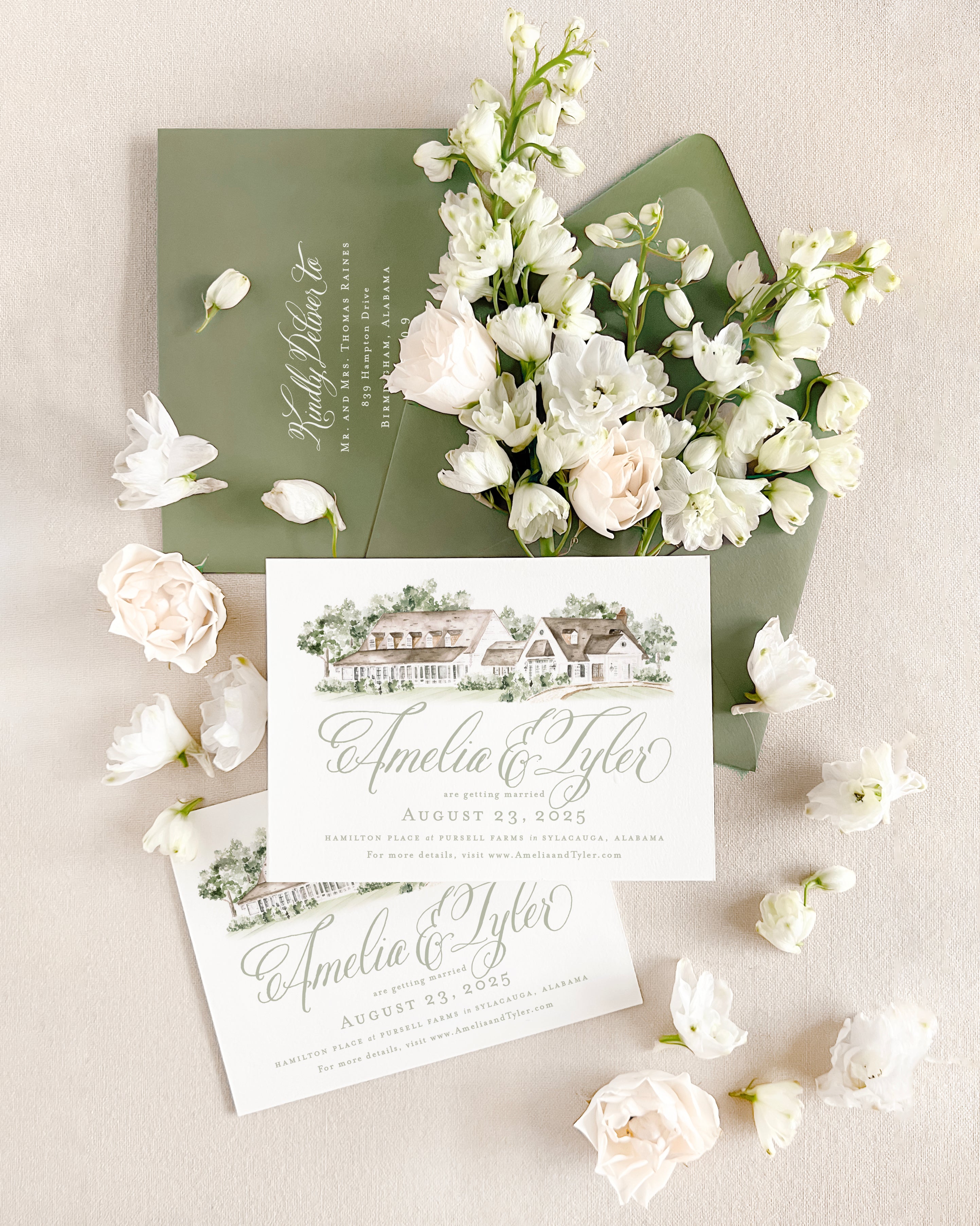 The Louisa Suite is the perfect combination of romantic Southern charm and whimsy with its selection of expertly painted watercolor florals and calligraphy styled script. This suite instantly sets the tone for an afternoon ceremony in the garden, or an elegant evening dancing beneath the stars. With multiple monogram style and floral detailed offerings, Louisa is a true client favorite.