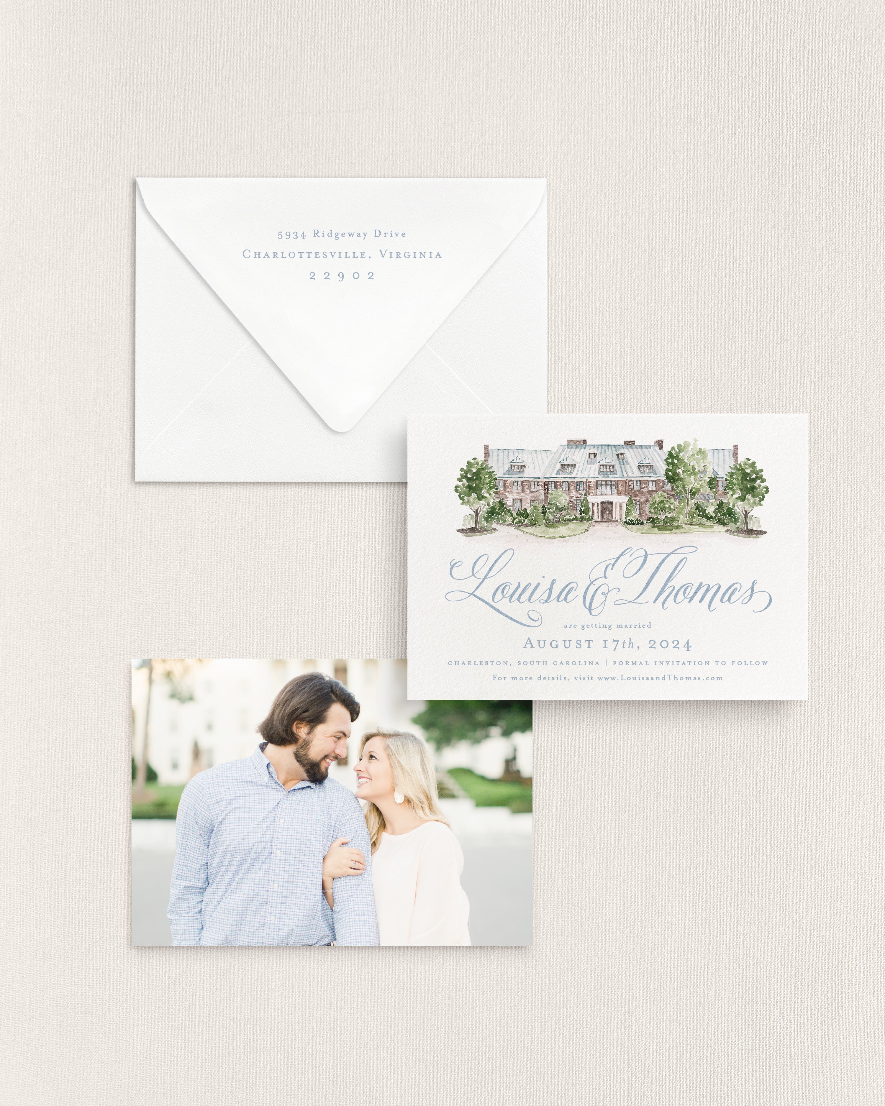Louisa Horizontal Save the Date No. 4 - Ft. Watercolor Venue