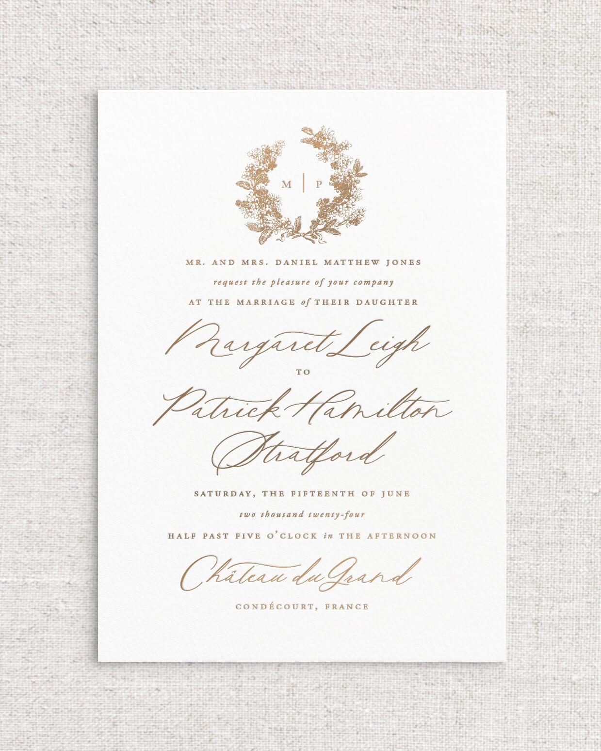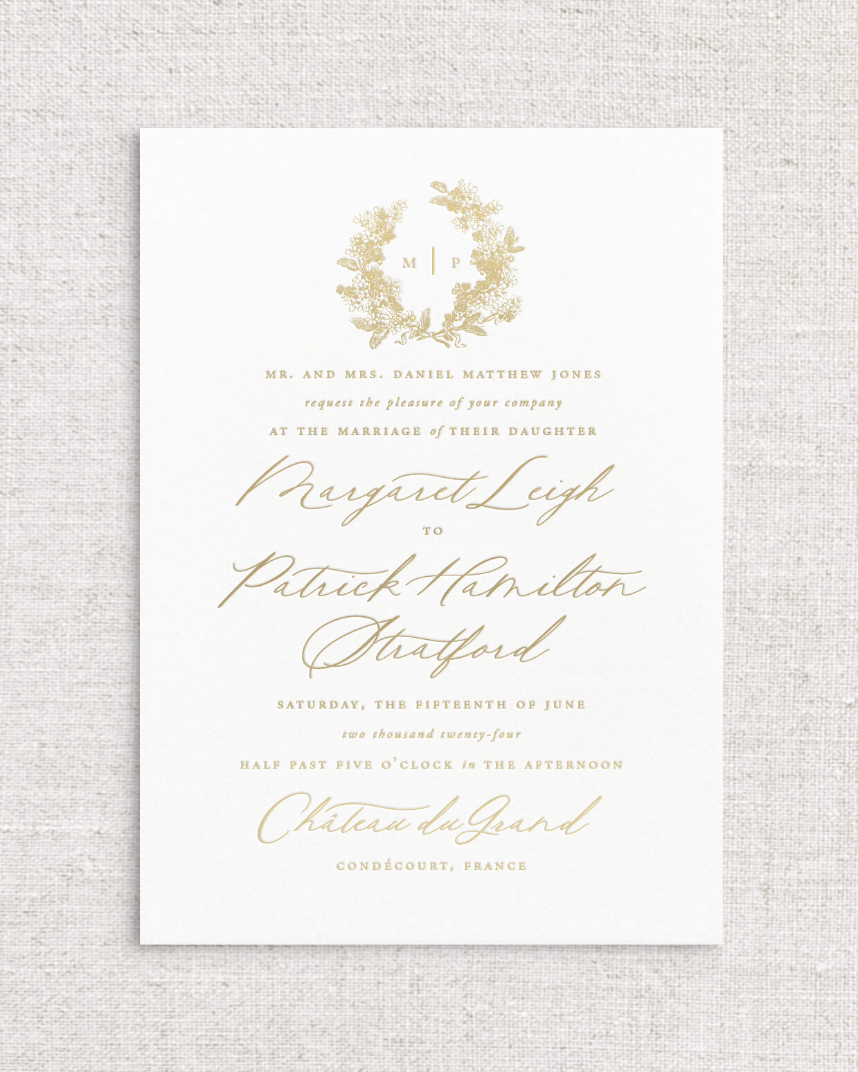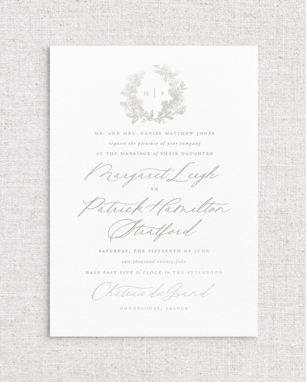 A classic choice for modern couples, The Margaret Suite offers relaxed sophistication, minimal elegance, and versatile design. Contemporary script lettering meets a steady serif with this pairing of intentionality. Margaret welcomes custom artwork like watercolor and hand drawn details, as well as a selection of wreaths, crests, and monograms.