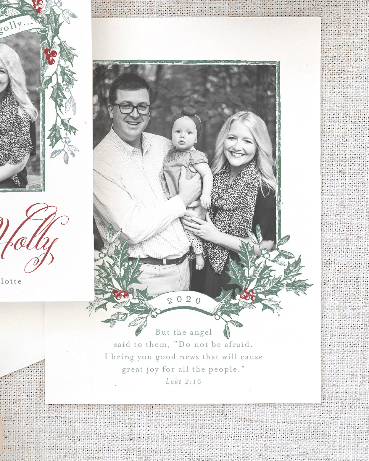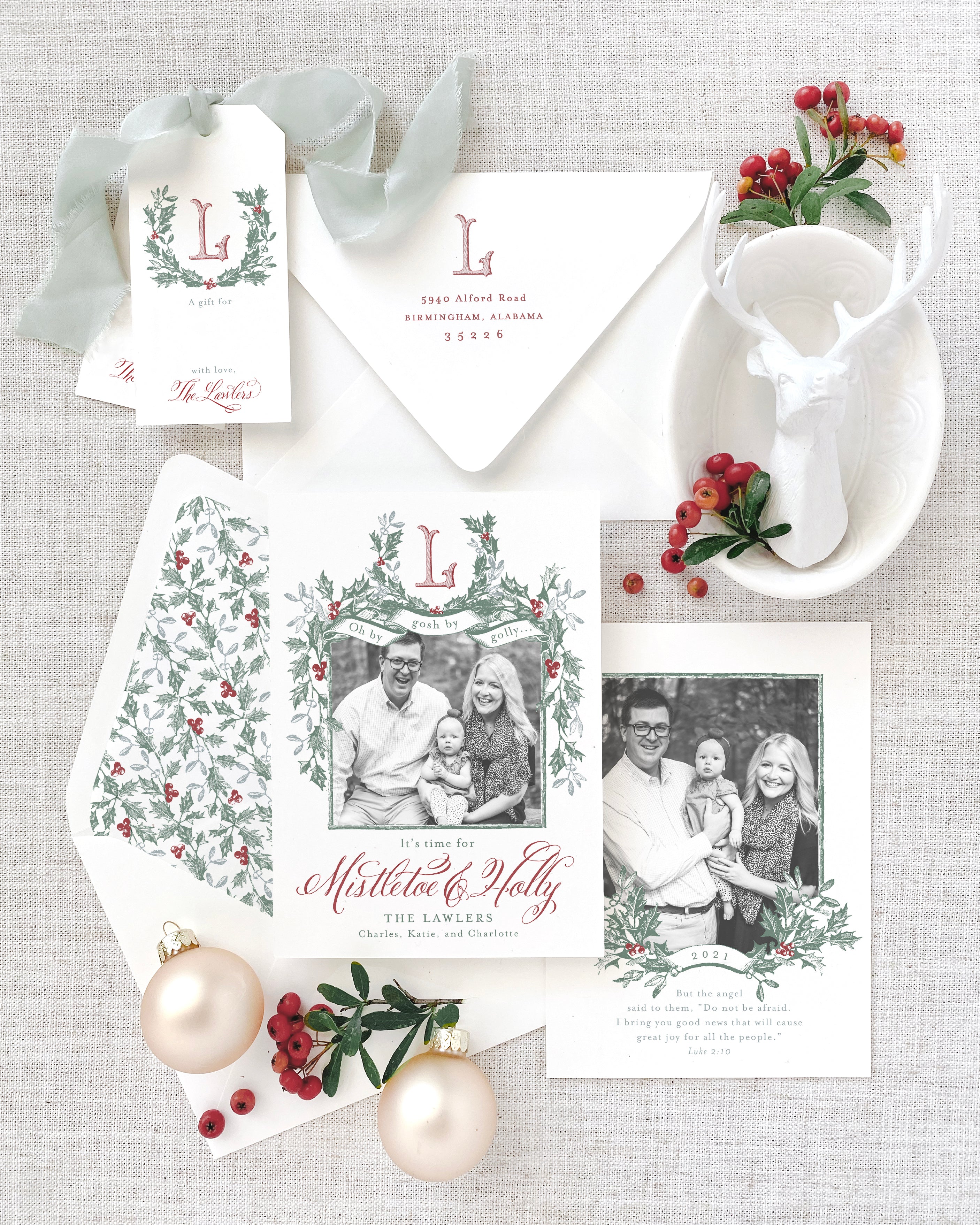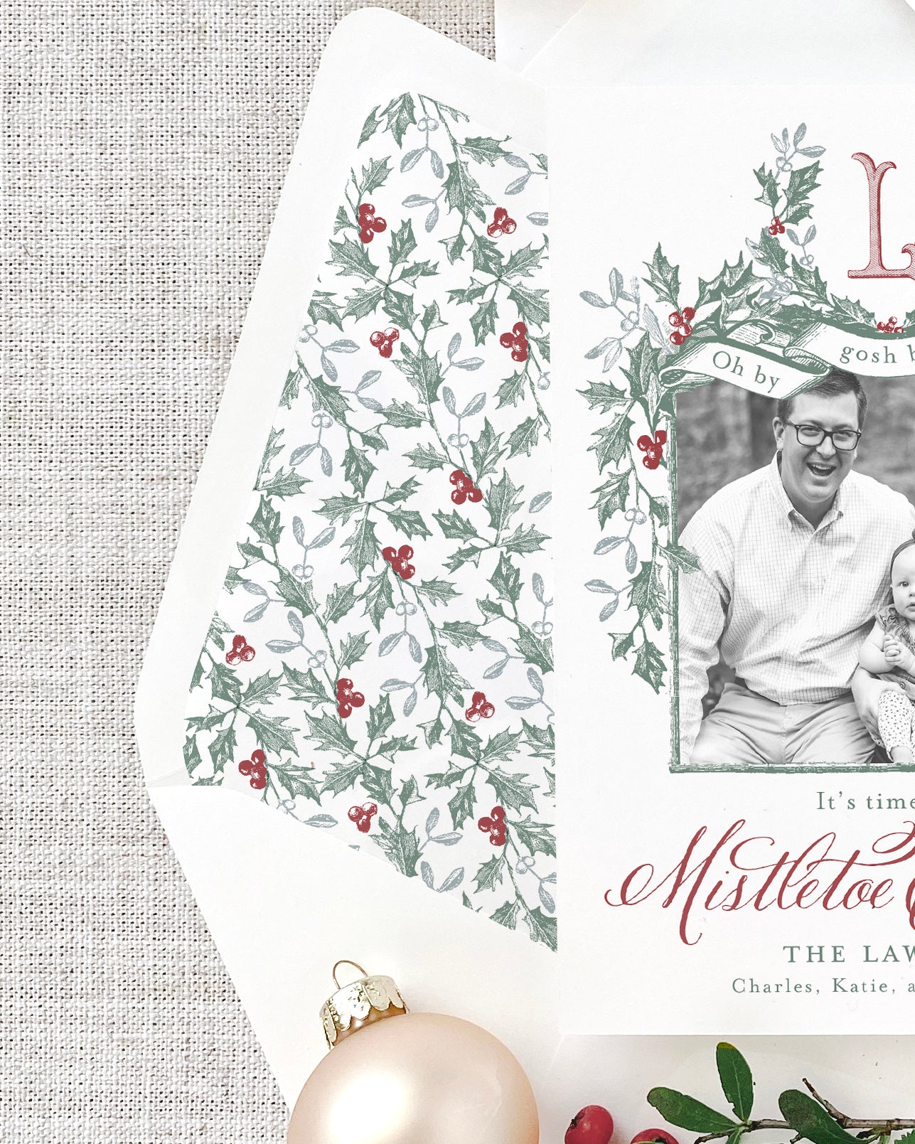Oh by gosh by golly...Celebrate the holiday season with Mistletoe and Holly! Featuring a family photo and customizable monogram, this card is the perfect way to share joy and warm wishes with your loved ones.