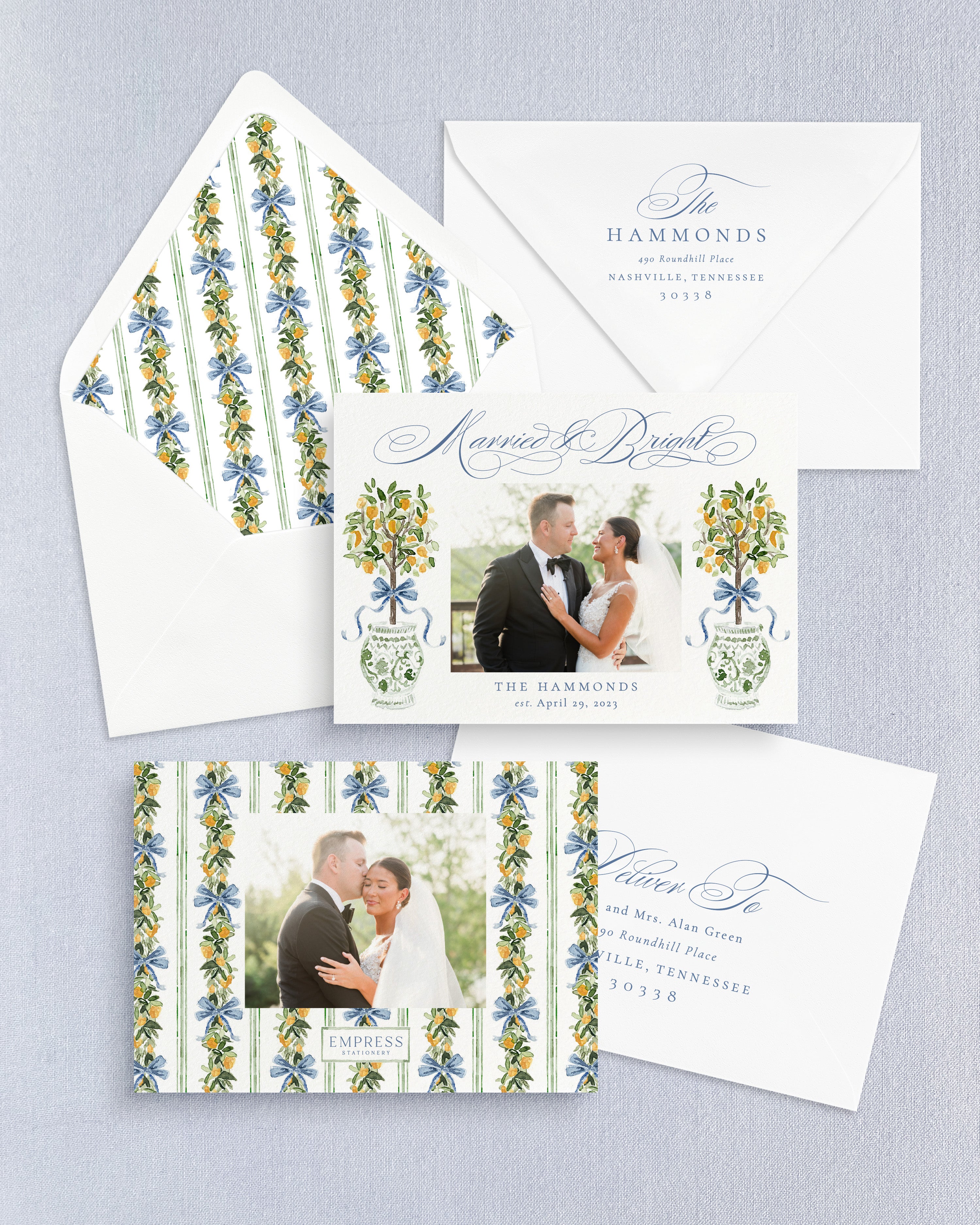 If I don't have my photo yet, can I still order and send later? Yes! We are happy to get started and set up your recipient addresses. Once you have your photos ready, email them to clientcare@empressstationery.com with your order number.