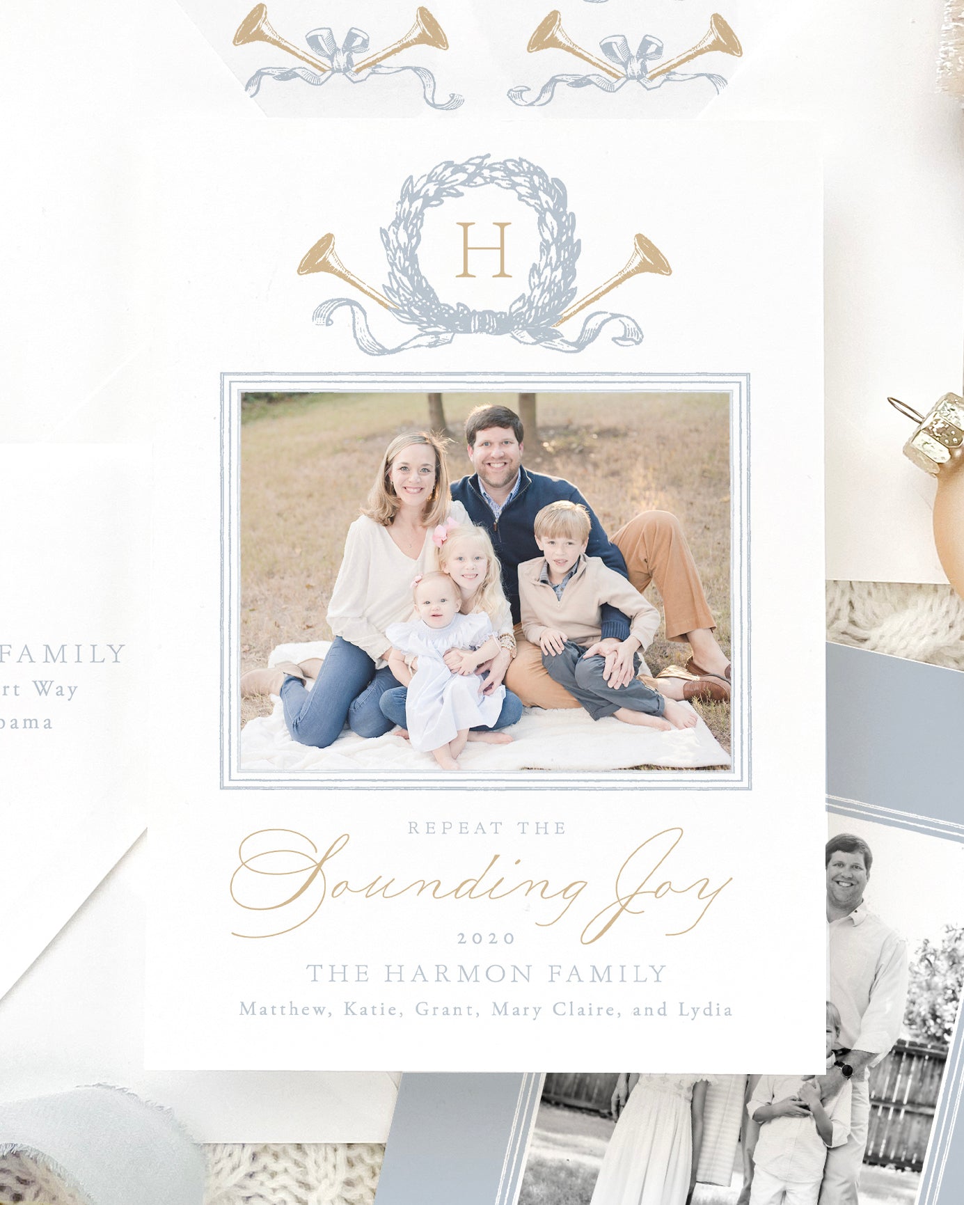 Share the holiday season with our Sounding Joy Christmas Card. This classic card celebrates the spirit of Christmas, perfect for sending warm wishes to your loved ones.