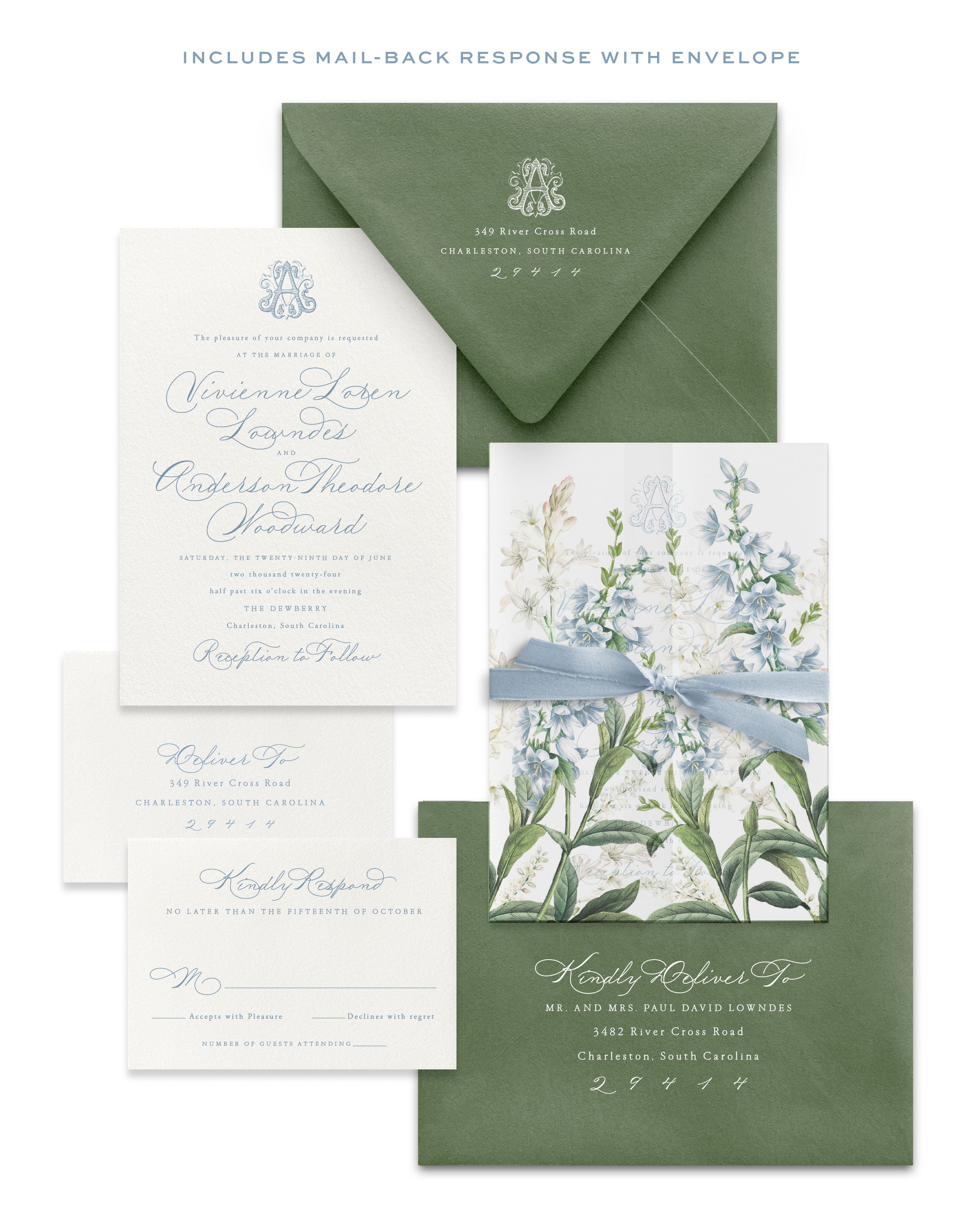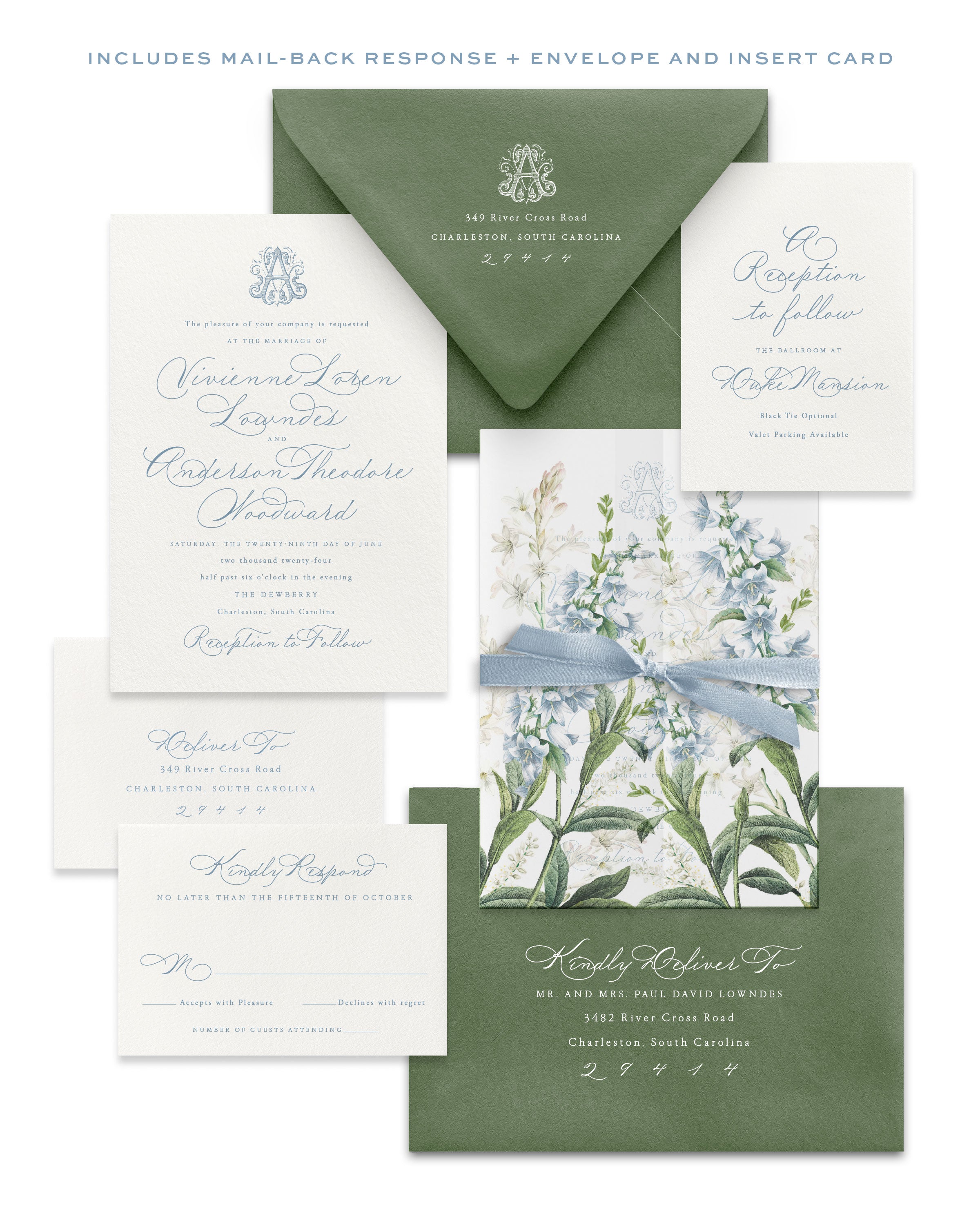 3. Your suite will require up to 3 weeks in production, and will ship to you via ground delivery upon completion. Production cannot be rushed at this time. If you have any concerns about the timeline of your order, email us at clientcare@empressstationery.com prior to ordering.